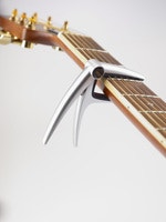 Profesjonell capo for western- og E-gitarer, spesielt for avrundede bånd. Klemmekjernen er rask og enkel å feste med én hånd. Capo veier bare 0,038 kg og hindrer ikke spillingen takket være sin slanke og elegante form. Capoets gummiovertrukne klemmer sitter tett mot fretet og sørger for at det ikke sklir.
