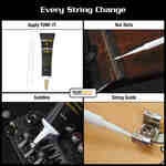 TUNE-IT MN106 smører alle kontaktflater som strengen har for å holde instrumentet stemt. For eksempel brosadel, strengetrykk, oversadel, dette hjelper strengen til å gli bedre, noe som gjør at instrumentet holder stemmingen bedre og at strengen holder lenger.