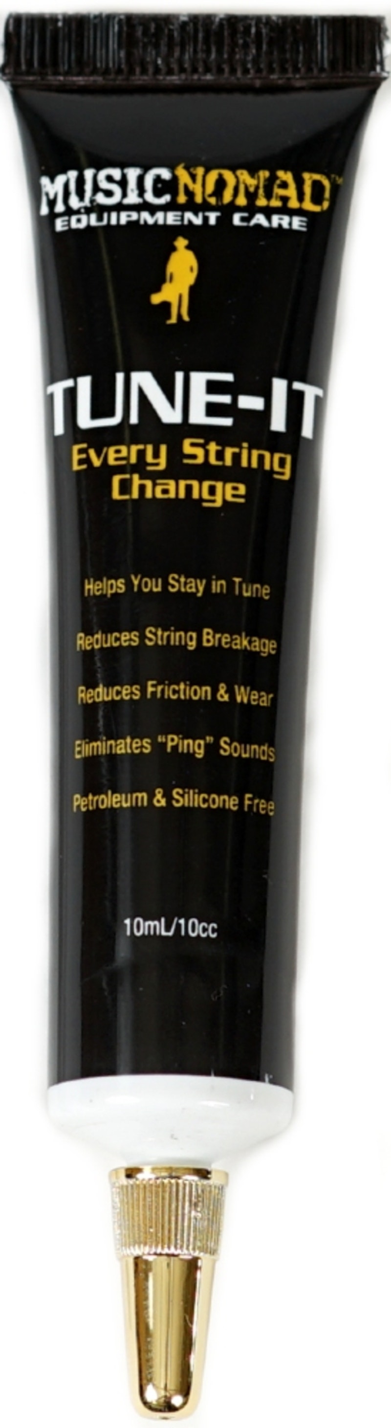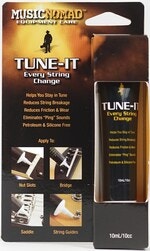Tune-It er et silikonfritt middel som ikke lukter og ikke etterlater flekker. Den inneholder ingredienser som holder smuss og oksid borte. Smør der strengen har en naturlig kontaktflate, f.eks. oversadelen og stolsadlene hver gang du bytter strenger og de vil løpe bedre og dermed holde tuningen bedre. Det påvirker ikke tonen eller sustainen til strengene, men får bare strengene til å gli bedre. Fungerer også å bruke på mekanikken eller vibarmen, ganske enkelt på enhver bevegelig del av instrumentet ditt.