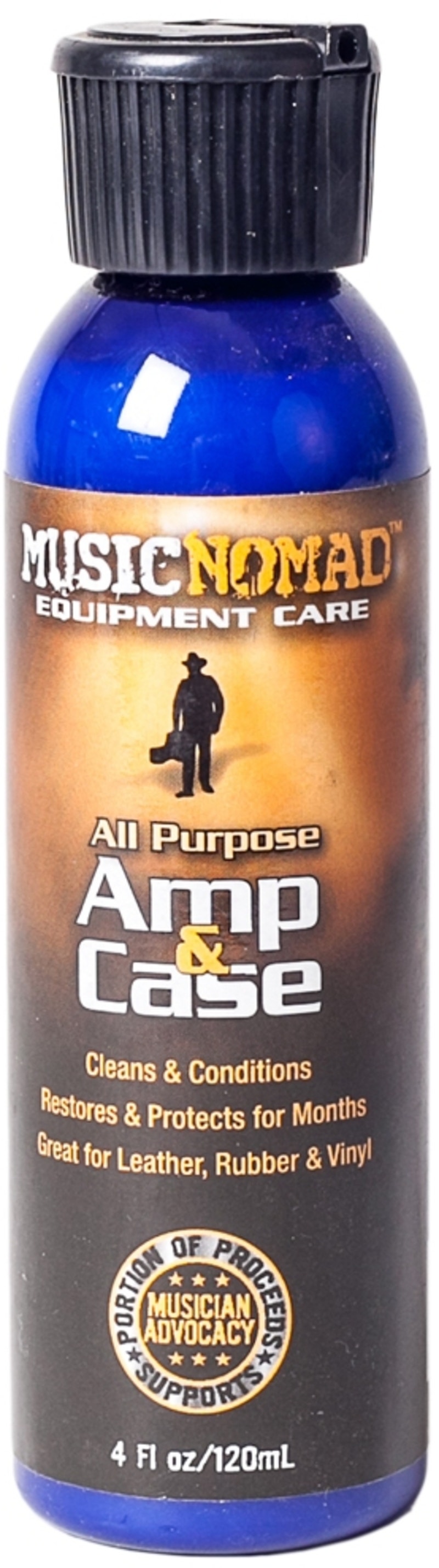 MusicNomads Amp & Case - Cleaner & Conditioner renser og frisker opp koffertene eller forsterkerne dine med et overflatelag av Tolex, Vinyl, Gummi eller Lær. Middelet er umiddelbart tørt og etterlater ikke en klebrig overflate, noe som gjør at støv ikke fester seg til overflaten etter rengjøring. En beskyttende film mot støv, UV-stråling og skitt er laget og holder tingene dine friske i flere måneder.
