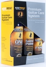 MusicNomads Premium Pack Guitar Care er en rensepakke som inneholder den effektive universalrensen The Guitar ONE og en flaske Guitar Polish når du trenger å gjøre en grundigere rengjøring av lakken på instrumentet ditt, pluss en flaske Fretboard F-ONE Oil som rengjør og vedlikeholder gripebrettet ditt. Pakken inneholder også to forskjellige mikrofiberkluter av fineste sort til å pusse og polere med.