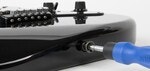 Den vendbare skrutrekkeren har en slisset skruetupp i den ene enden og en Phillips skruetupp i den andre. Med den andre enden av verktøyet kan du skru muttere i fem forskjellige størrelser. Det er 10 mm, 12 mm, 14 mm, 1/2" og 7/16", som er de vanligste størrelsene på muttere på gitarer, basser og forsterkere. Enden der du setter inn skrutrekkeren har også en 1/2" muttertrekker som passer i gitarer hvor du har jack-kontakten litt innfelt i gitaren. Håndtaket er laget av et meget slitesterkt nylonmateriale som ikke vil ripe opp instrumentet ditt under bruk.