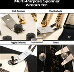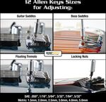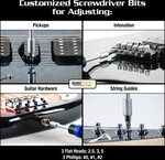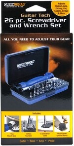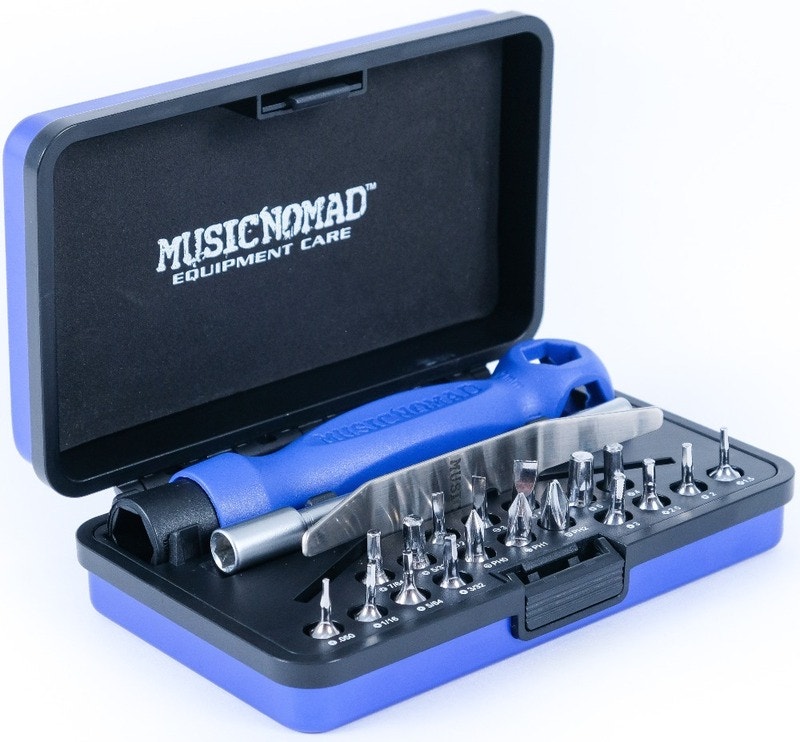 Et must for hver instrumentkasse eller arbeidsstasjon. MusicNomads Premium Guitar Tech skrutrekker- og skrunøkkelsett tilbyr uovertruffen allsidighet i en kompakt, robust koffert. Designet spesielt for gitarer, kommer den med 18 skrutrekkerbits, 7 sekskantnøkkelstørrelser, pluss vår Premium-nøkkel. Perfekt for å gjøre justeringer på all gitarhardware som: tunere, jacks, potter, broer, pickuper, broer, string guides, pickguards, tremoloer og mer. Vårt ergonomiske, store håndtak er laget av sterkt ballistisk nylonmateriale som ikke vil ripe eller skrape hardwaren din og er konstruert for de mest populære sekskantnøkkelstørrelsene. Den kan til og med stramme muttere i nedsenkede poter og innfelte jackplugger som på telegitarer. Det er MusicNomad-kvalitet – hever standarden innen utstyrspleie.
