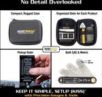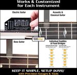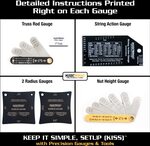 Ikke bare er det morsomt, men en korrekt oppsatt gitar tar spillet og lyden til et helt nytt nivå. MusicNomads Precision Setup Gauge Set avmystifiserer oppsettprosessen ved å ha utviklet innovative, høykvalitetsmålere kombinert med trinnvise generelle retningslinjer som alle kan følge for å hjelpe med å sette opp gitaren eller bassen. Etter flere år med forskning og utvikling og i samarbeid med Master Guitar Tech Geoff Luttrell og andre toppreparasjonsteknikere har MusicNomad utviklet KEEP IT SIMPLE, SETUP (KISS)™. Med vår KISS-metode og vår 6 stk. Setup Gauge Set kan dun sjekke de vitale områdene på instrumentet ditt og bruke verktøyene våre (selges separat) for å utføre ditt eget oppsett. Enten du har en elektrisk, akustisk, klassisk eller bassgitar, gir vi deg den nøyaktige spesifikasjonen du trenger etter instrumenttype, inkludert instruksjoner trykt rett på produktet som gjør at du slipper å gjette ved oppgave. Settet inkluderer en: Truss Rod Gauge, Pick Capo, String Action Gauge, 2 Radius Gauges og mutterhøydemåler. Vi inkluderer til og med et 24 siders instruksjonshefte og en fin bæreveske. Det er MusicNomad-kvalitet – hever standarden innen utstyrspleie.