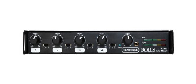 Denne MX410 er en fire-kanals mikrofonmixer med balanserte XLR-innganger og -utganger. Enheten er ideell for kringkastings- og videosmarkedene. Den har de samme funksjonene som andre ENG / bærbare miksere uten den ekstremt høye prisen. Bruksområder inkluderer: * DV Feltsproduksjon. * Elektronisk nyhetsinnsamling. * Lokasjonsopptak (dialog og musikk). * Digital innspilling. * Sendingsopptak. * Bordmiksing for videopostproduksjon.
