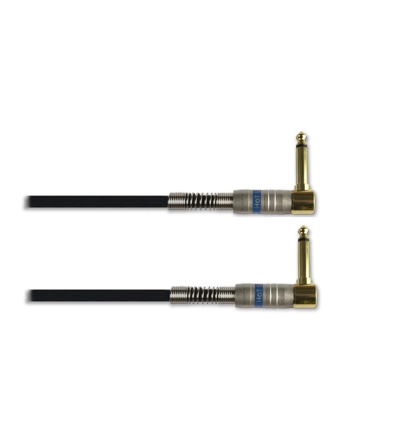 Sort patchkabel med plugger og belastningsbeskyttelse i metall. Vinklede kontakter.