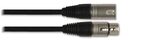 Sort kabel med kontakter i metall og avlastningsbeskyttelse i myk plast. 6 m.