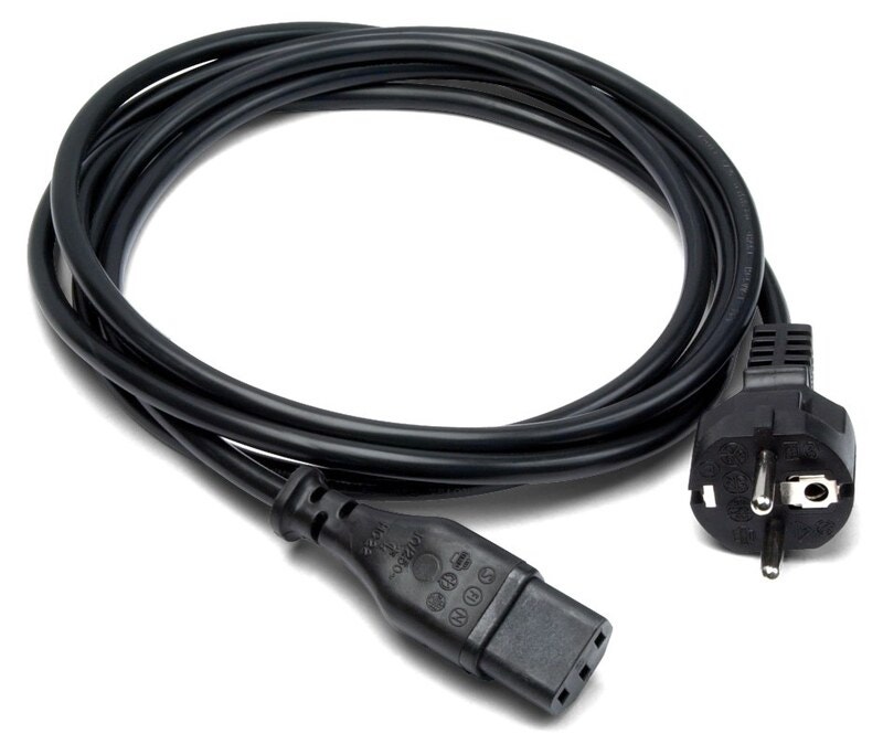 Nettkabel med støpt jordet stikkontakt og 3-pols standardkontakt.