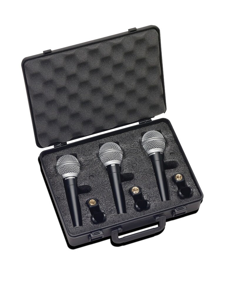 Dynamisk sang- og innspillingsmikrofon med on/off-bryter, nyrekarakteristikk. 3-pack, komplett med mikrofonholdere og etui.