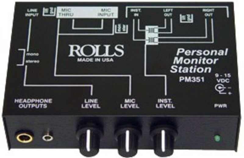 Personal Monitor Mixer som lar brukeren mikse signalene fra et stereo/mono linjesignal med en mikrofon og stereo/mono instrumentsignal for å skape sin egen lyttemiks. Du kobler helt enkelt inn din mikrofon og/eller synth direkte i PM351, og kobler så videre mic/instrument-signalene via thru- samt out-utgangene videre til mikseren. Siden er det bare å koble inn monitortapningen fra mikseren i PM351. På den måten kontrollerer du din egen lytting gjennom å justere volumpot'et for Mic/ Instrument/ Line.