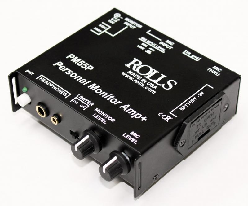 The PM55P With built in Optical Limiter is designed for utøvere som trenger å overvåke sitt eget signal, slik som sin vokal, med hovedmiksen. Enheten har blitt veldig populær blant trommeslagere som trenger å blande en klikksignal med en monitor. Og mange lydteknikere bruker PM55P som en rask linjetester for å feilsøke lydanlegg. Den drives enten av ett 9 volt batteri eller den medfølgende PS27s strømadapter. PM55P har også en medfølgende belteklips.