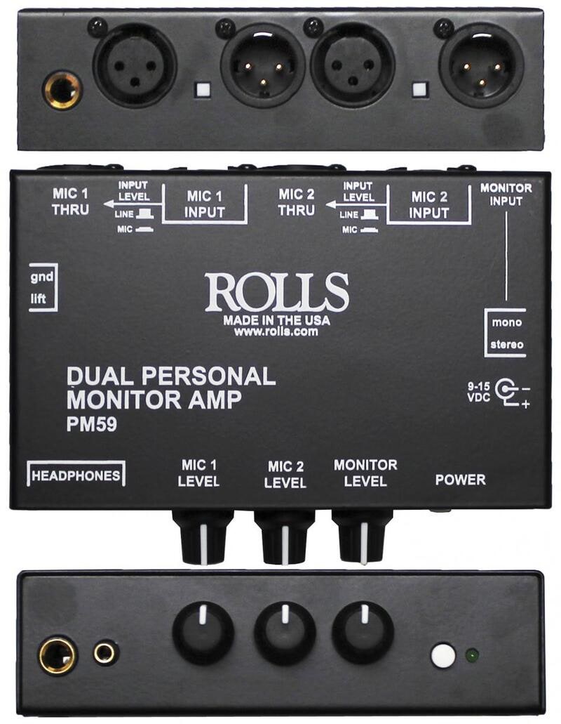 PM59 blander ett eller to mikrofoner med et linjenivå Monitor-signal til et sett med hodetelefoner. Mikrofoninngangene kan konfigureres for standard mikrofonnivå eller linjenivå XLR. PM59 har en monitornivåkontroll, mikrofon/XLR nivåkontroller for hver kanal, mikrofon/linje pass-through utgang XLR-porter for begge kanaler, to hodetelefonutganger og en stereo eller mono TRS eller TS 1/4