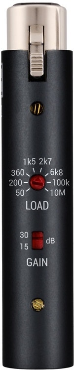 Artikkelnummer 1315902Sort forforsterker med justerbar forsterkning og impedanse for dynamiske mikrofoner. Drevet av 48v Phantom