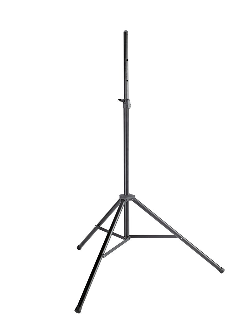 XL-versjonen blant høyttalerstativer. Solid og stabil, helt laget av aluminiumrør. Støttende base-rør med diameter på 35 mm og store gummierte endekapper sikrer et stabilt og sikkert stativ. I sammenligning med et «vanlig» høyttalerstativ er rotasjonskretset mye større og utgjør bemerkelsesverdige 1 558 mm. Maks høyde er 2 500 mm og gir dermed allsidige bruksalternativer. Klemmen utstyrt med det patenterte push-button systemet gjør det mulig med en brukervennlig høydejustering av stativet. Klemmutteren gir ekstra stabilitet og vibrasjonsfri holdning av høyttaleren. Ytterligere spesialfunksjoner er uttrekkbar beskyttelse for forlengerøret, den integrerte støtdemperen og en monteringshjelp for høyttalerhuset. Stativet er sammenleggbart for enkel transport. Stativet kan omgjøres til et lysestativ med passende tilbehør.