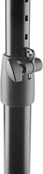 Høyttalerstativ av stål med tre ben. Justerbar høyde med ringlåsmekanisme og mulighet for intern kabeltrekking.