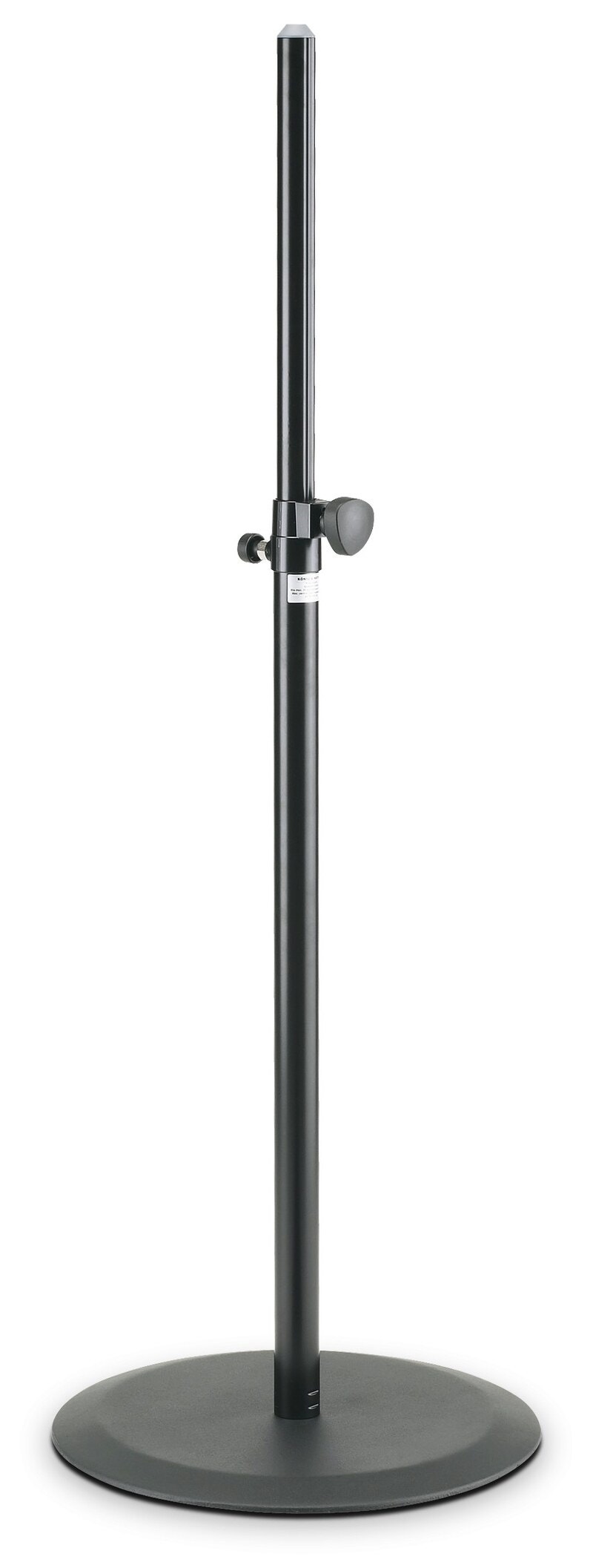 Dekorativt 2-delt høyttalerstativ av stål. Vrifeste med sikkerhetssplint for høydreguleringen.