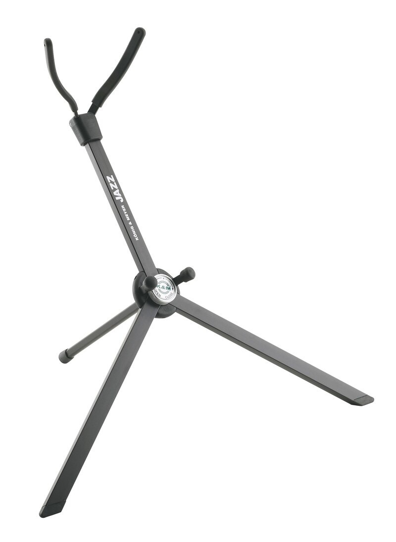 Stabilt og lettanvendelig stativ for tenorsaksofon. Kan legges sammen og transporteres i saksofonklokken i medfølgende myke velurpose.