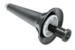 Den 5-benede basen gir maksimal stabilitet for instrumentet. Den avtagbare metallbensbasen skrus til pisken slik at hele enheten kan oppbevares i instrumentets bell for enkel transport. Den svarte plastpisen er dekket med filtputer for å beskytte instrumentet.