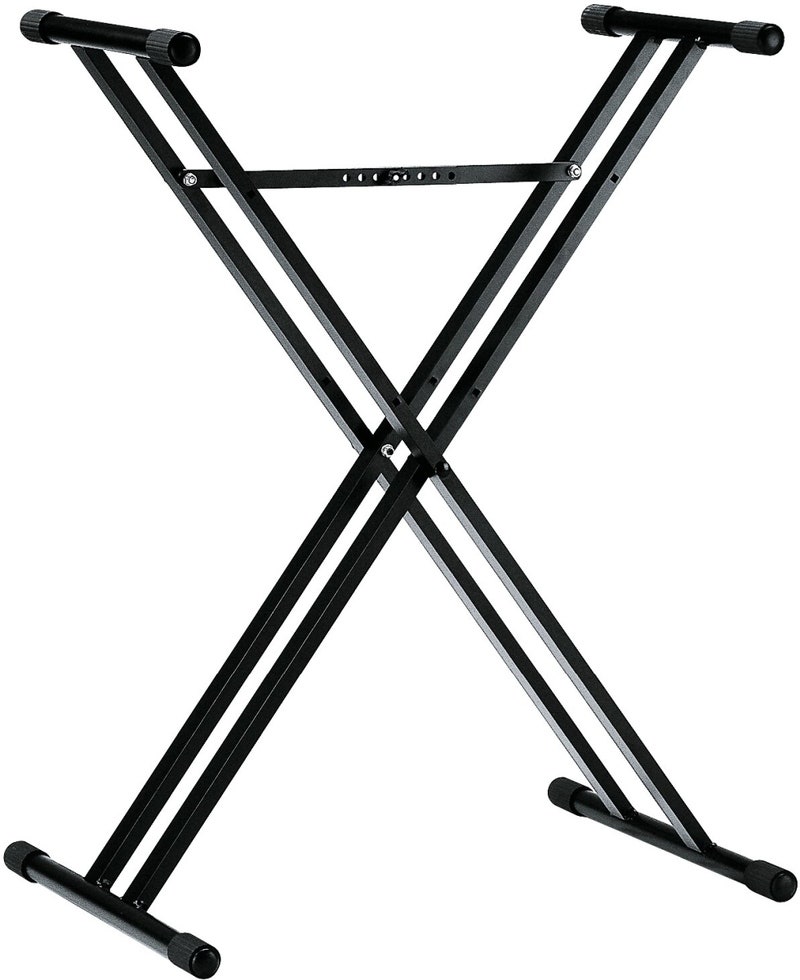 Myke robuste keyboardstativ av kryssmodell med doble benstag for å tåle selv de tyngste klaviaturene.