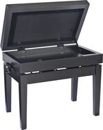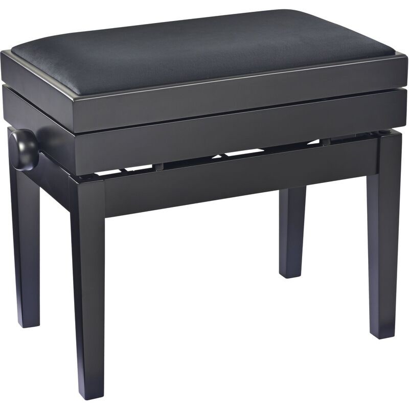 Artikkelnummer 25513955Høydejusterbar pianokrakk i massivt tre med oppbevaring, matt svart finish og svart veloursete