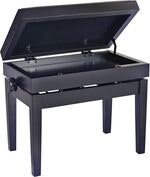 Artikkelnummer 25513956Høydejusterbar pianokrakk i massivt tre med oppbevaring, matt svart finish og svart kunstskinnsete