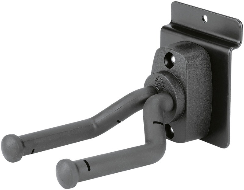 Artikkelnummer 25544160Gitarrhållare för slatwall/spårpanel, självjusterande, robust, passar de flesta gitarrmodeller.