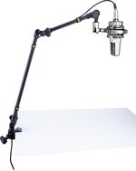 Håndterlig arm for podcastmikrofon med förståelse for montering i rør, bordsskive eller annet stativ.