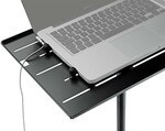 Den faste bordplaten på 479 x 312 mm har en kant for å forhindre at småting faller av, samt flere spor hvor man kan feste de fire gummihøvlede lokkene for å holde laptopen på plass. Bordplaten har også en kabelkanal slik at strømkabelen til PC-en ikke trenger å gå over kanten.