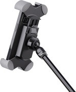 Med denne universalholderen er smarttelefonen din alltid innen rekkevidde. Holderen passer for alle flate enheter med en bredde på 55 til 85 mm. Operasjonen er rask og enkel. En hurtigutløserknapp på baksiden med låsemekanisme låser opp de gummierte klemmene og smarttelefonen kan enkelt fjernes. Takket være det fleksible kuleleddet kan holderen vippes opp og ned og roteres 360°. 3/8" eller 5/8" gjengen gjør at smarttelefonholderen kan skrus på et hvilket som helst mikrofonstativ, bordstativ eller mikrofonarm.