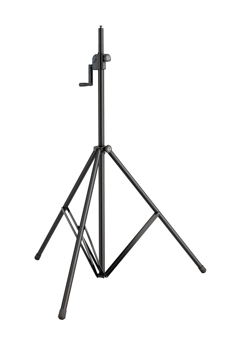 Høy-kvalitets aluminium belysningstativ for profesjonell bruk. Justeringshøyden fra 1,755 til 3,000 mm er komfortabel og sikker takket være en vri-mekanisme med »Auto Lock« låsesystem. Den ergonomiske driften viser seg å være enkel og brukervennlig. Det robuste stativet er fokusert på stabilitet og stødighet, slik at 5° stabilitetstest i henhold til DIN 56950-3 med en belastningskapasitet på 35 kg lett kan oppnås. De kompakte transportmålene er 1,733 x 150 x 202 mm og vekten er ca. 8,0 kg. Den integrerte M10 gjengering kan brukes til å montere ekstra tråders eller enkeltlys direkte.