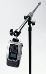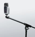 Adapter med kuleledd for å feste f.eks. kamera eller bærbart opptaksutstyr på et mikrofonstativ.