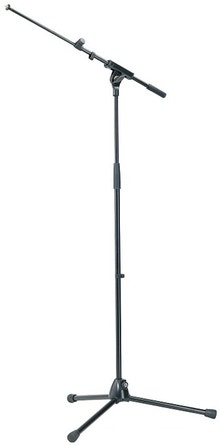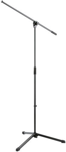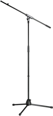 Mikrofonstativ med bom, hopfällbara ben, svart.