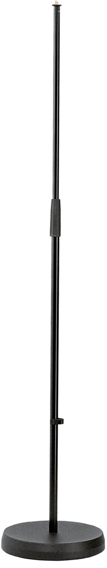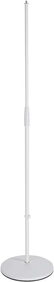 Rakt mikrofonstativ med rund fot, hvit finish.