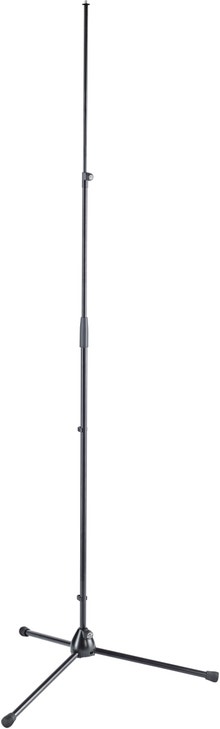 Mikrofonstativ, ekstra høyt, rett, lange ben, svart.