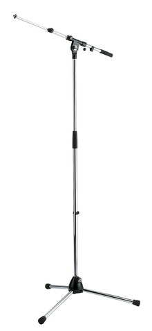 Chrome Mikrofonstativ. Høyde: 900/1605 mm, Bom Lengde: 460/770 mm
