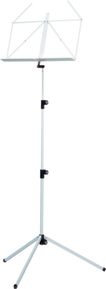 Hvit notestativ, kompakt modell, sammenleggbar.